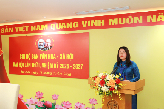 Ngày 15/4/2025, Chi bộ Ban Văn hóa - Xã hội HĐND Thành phố tổ chức Đại hội lần thứ I, nhiệm kỳ 2025-2027. Đồng chí Phùng Thị Hồng Hà, Ủy viên Ban Thường vụ Thành ủy, Phó Chủ tịch Thường trực HĐND Thành phố dự và phát biểu chỉ đạo tại Đại hội. Cũng tham dự Đại hội có đồng chí Nguyễn Thanh Bình, Ủy viên Thường trực, Trưởng Ban Văn hóa - Xã hội, Bí thư Chi bộ Ban Văn hóa - Xã hội HĐND Thành phố; các đồng chí Phó Trưởng Ban và các đảng viên thuộc chi bộ.