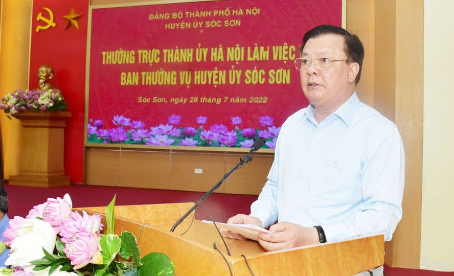 Thay mặt Thường trực Thành ủy phát biểu kết luận, Bí thư Thành ủy Đinh Tiến Dũng ghi nhận và biểu dương sự cố gắng và những kết quả thực hiện các nhiệm vụ chính trị của huyện Sóc Sơn năm 2021 và 7 tháng năm 2022, đặc biệt trong bối cảnh còn gặp nhiều khó khăn do tác động của đại dịch Covid-19.