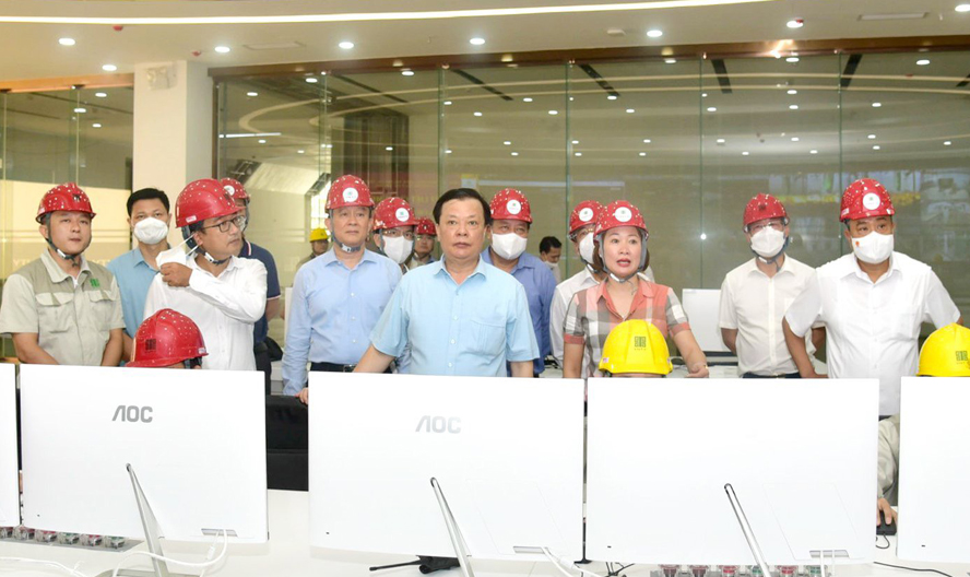 Bí thư Thành ủy Hà Nội Đinh Tiến Dũng và các đồng chí lãnh đạo thành phố Hà Nội thăm, kiểm tra nhà máy điện rác Thiên Ý tại Khu liên hiệp xử lý chất thải Nam Sơn (Sóc Sơn)