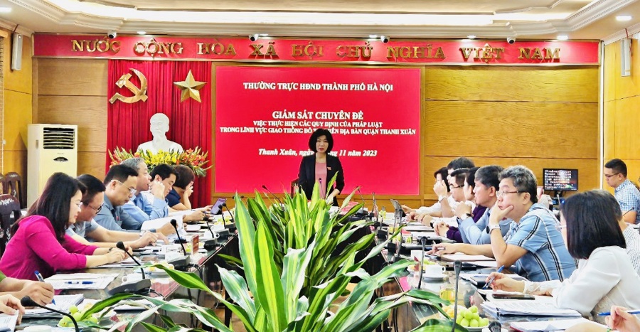 Về tình trạng lấn chiếm lòng đường, vỉa hè kinh doanh, Trưởng đoàn giám sát đề nghị quận Thanh Xuân trong xử lý cần có quan điểm rõ, tránh nể nang; cần thiết nghiên cứu, đề xuất giải pháp cho người dân thuê vỉa hè đủ điều kiện bảo đảm giao thông, mỹ quan đô thị để kinh doanh, nộp ngân sách nhà nước.