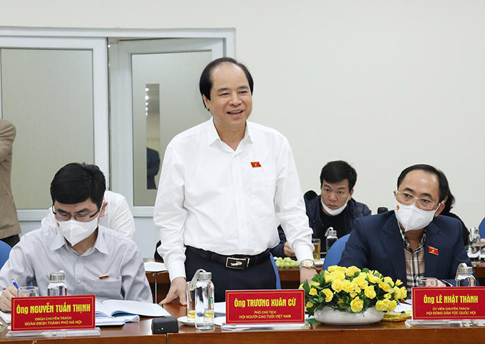 Đại biểu Trương Xuân Cừ - Phó Chủ tịch Hội Người cao tuổi Việt Nam trao đổi tại buổi giám sát