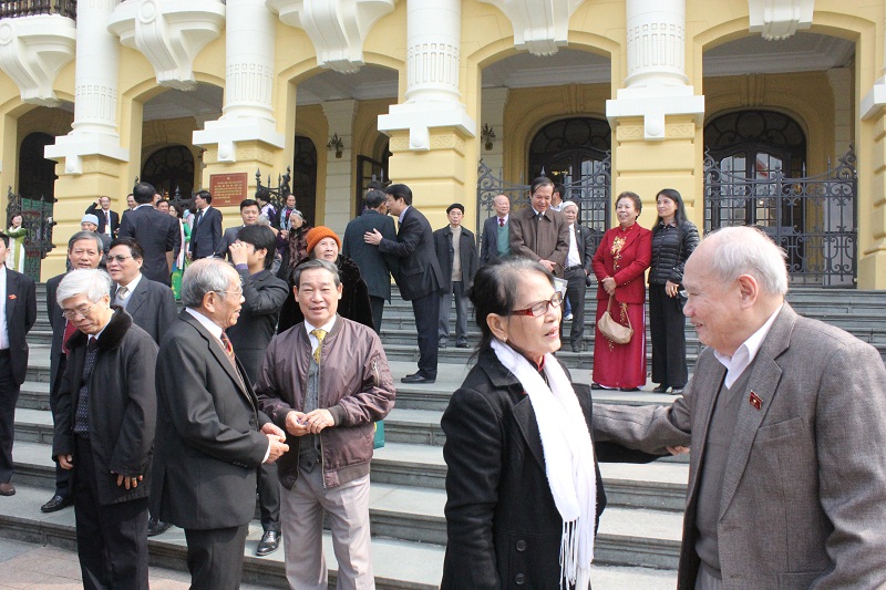 Tham dự buổi gặp mặt có các đồng chí: Tổng Bí thư Nguyễn Phú Trọng; nguyên Tổng Bí thư Nông Đức Mạnh; Chủ tịch Quốc hội Nguyễn Sinh Hùng; Ủy viên Bộ Chính trị, Chỉ đạo Đảng bộ TP Hà Nội, Trưởng Đoàn ĐB Quốc hội TP Phạm Quang Nghị; Ủy viên T.Ư Đảng, nguyên Chủ tịch UBND TP Nguyễn Thế Thảo; Phó Bí thư Thường trực Thành ủy Ngô Thị Thanh Hằng; Chủ tịch HĐND TP Nguyễn Thị Bích Ngọc; Chủ tịch UBND TP Nguyễn Đức Chung; Phó Bí thư Thành ủy Đào Đức Toàn; Chủ tịch UB MTTQ TP Đào Văn Bình và các đồng chí lãnh đạo, nguyên lãnh đạo Đảng, Nhà nước, Quốc hội, TP Hà Nội và các ĐB Quốc hội TP qua các thời kỳ.