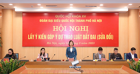 Sáng 14/3/2023, Đoàn đại biểu Quốc hội thành phố Hà Nội tổ chức hội nghị lấy ý kiến góp ý dự thảo Luật Đất đai (sửa đổi). Phó Trưởng đoàn chuyên trách Đoàn đại biểu Quốc hội Thành phố Phạm Thị Thanh Mai chủ trì hội nghị. Tham dự hội nghị có đại diện lãnh đạo các Ban, Văn phòng Đoàn ĐBQH và HĐND TP; đại diện các sở, ban, ngành; UBND các quận, huyện, thị xã; các chuyên gia, nhà khoa học.
