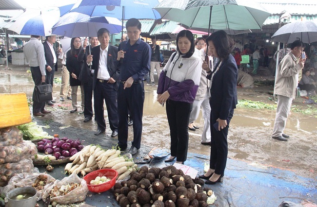 Đoàn giám sát khu vực bán củ quả của chợ Minh Khai