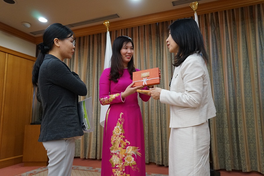 Trao quà lưu niệm sau hội đàm với bà Phó Thị trưởng TP Kansai - Nhật Bản
