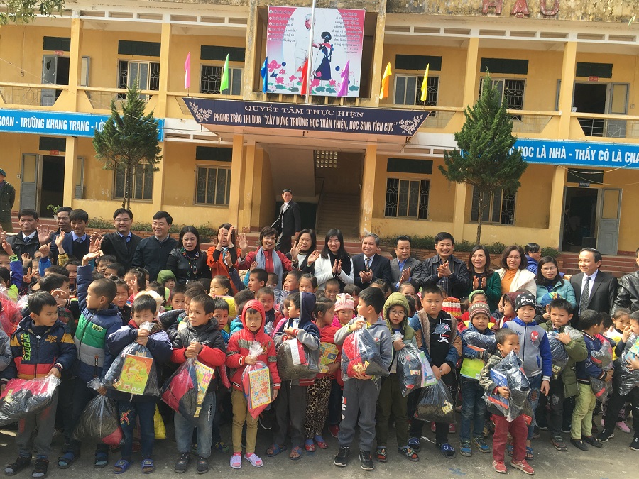 Cũng nhân dịp này, Đoàn công tác đã đến tặng quà cho các em học sinh Trường tiểu học và Trung học cơ sở xã Phú Cường, huyện Tân Lạc, tỉnh Hòa Bình tặng 750 chiếc áo ấm, 10 chiếc xe đạp, 4.000 cuốn vở và một số vật phẩm thiết yếu khác với tổng giá trị quà tặng 130 triệu đồng. Đoàn thăm và tặng quà cho học sinh tại trường Tiểu học, THCS Mường Men và một số trường tại các xã lân cận thuộc huyện Vân Hồ, tỉnh Sơn La 1.050 áo ấm, 10 xe đạp, trên 6.000 cuốn vở và một số vật phẩm thiết yếu khác với tổng giá trị quà tặng 170 triệu đồng.