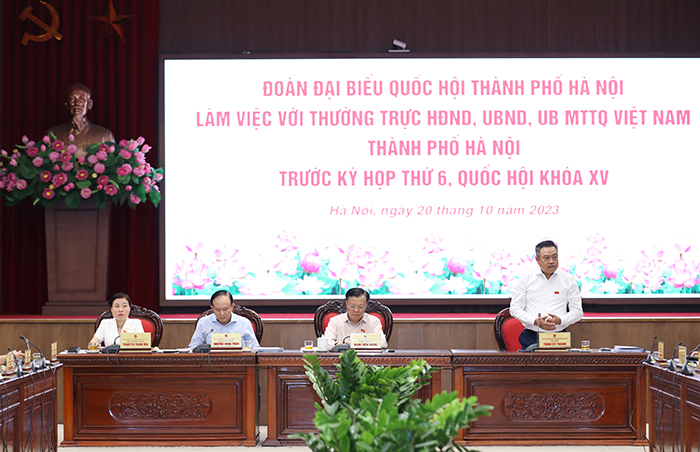 Sau khi nghe đại diện Tòa án nhân dân, Viện Kiểm sát nhân dân Thành phố báo cáo, hội nghị đã tiến hành thảo luận. Các đại biểu Quốc hội đánh giá cao sự chủ động, tích cực của thành phố Hà Nội dưới sự lãnh đạo của Thành ủy trong việc triển khai tổ chức thực hiện những chủ trương lớn, như: Dự án đường Vành đai 4 - Vùng Thủ đô Hà Nội; xây dựng dự thảo Luật Thủ đô (sửa đổi)... Các đại biểu cũng đã nêu thêm một số vấn đề cử tri kiến nghị và công tác giải quyết đơn thư, khiếu nại, tố cáo trên địa bàn Thủ đô.