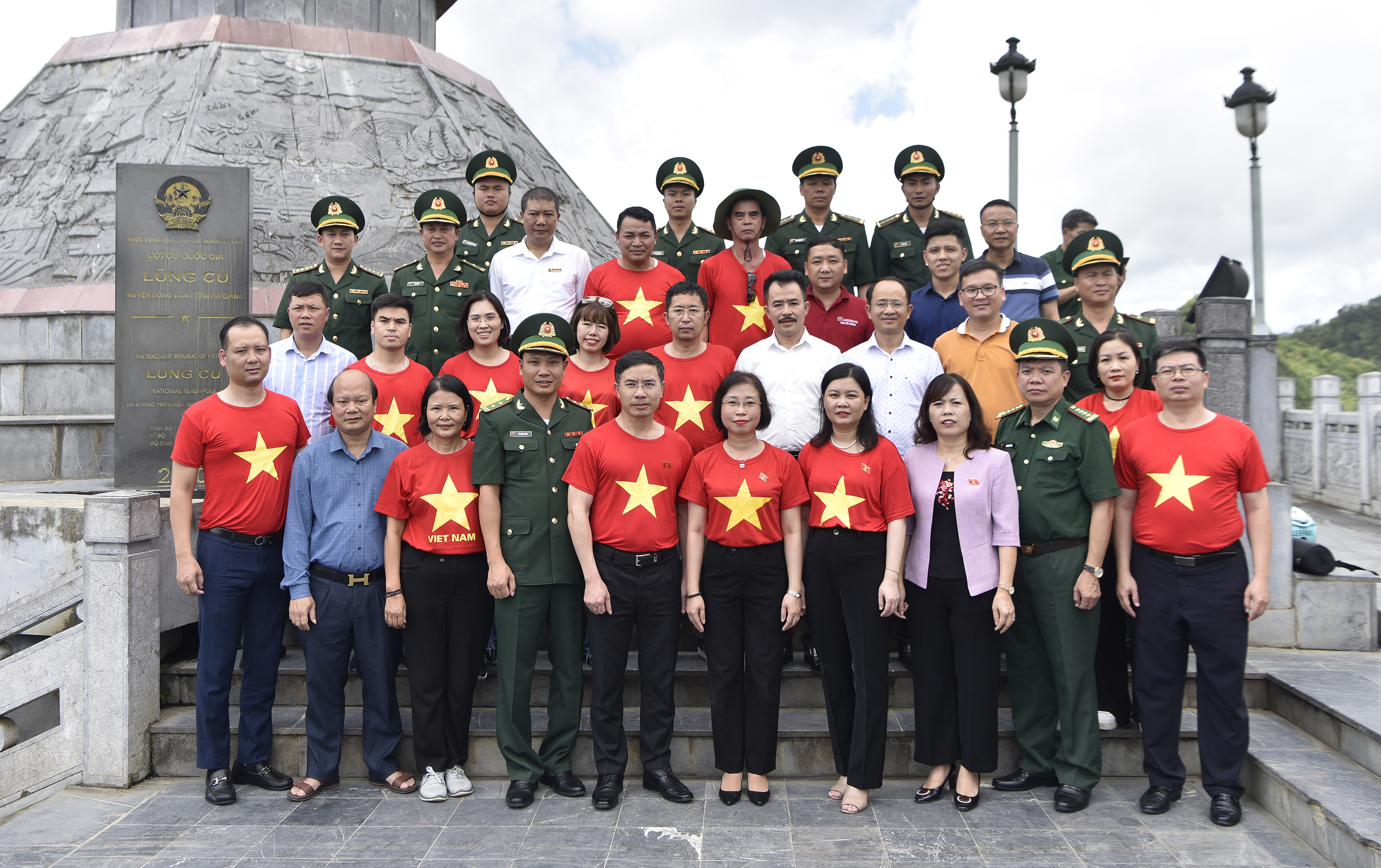 Đoàn đại biểu Quốc hội thành phố Hà Nội chụp ảnh lưu niệm tại Cột cờ Lũng Cú