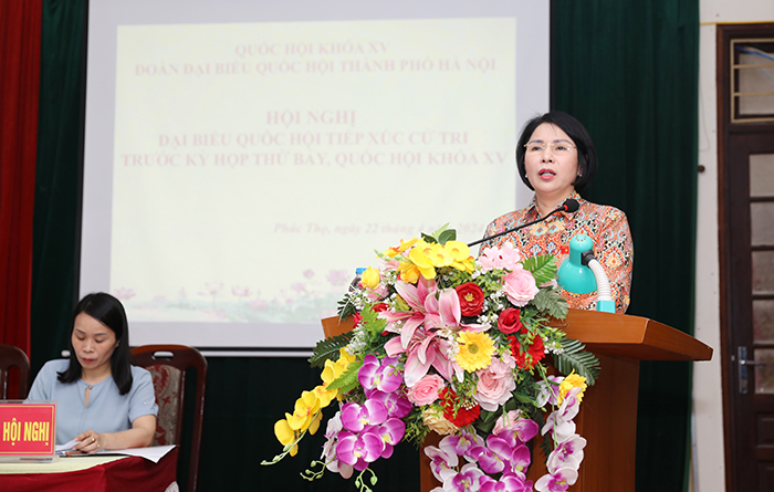Phát biểu tại hội nghị, đại biểu Quốc hội Trần Thị Nhị Hà, Phó ban Dân nguyện của Ủy ban Thường vụ Quốc hội đã phát biểu tiếp thu các ý kiến, kiến nghị của cử tri huyện Phúc Thọ; đồng thời khẳng định sẽ tổng hợp đầy đủ để gửi tới các cơ quan có thẩm quyền xem xét, giải quyết và trả lời theo đúng quy định./.