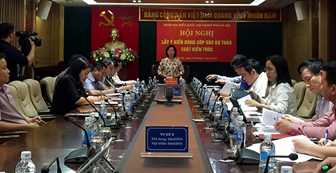 Theo yêu cầu của Ủy ban Thường vụ Quốc hội và thực hiện Kế hoạch hoạt động của Đoàn ĐBQH thành phố Hà Nội về việc lấy ý kiến góp ý vào các dự thảo Luật dự kiến thông qua tại kỳ họp thứ Bảy, Quốc hội khóa XIV. Ngày 16/4/2019, Đoàn ĐBQH Thành phố tổ chức Hội nghị lấy ý kiến vào dự thảo Luật Kiến trúc, đồng chí Bùi Huyền Mai, Thành Ủy viên, Phó Trưởng Đoàn chuyên trách chủ trì Hội nghị