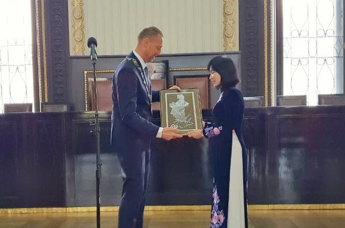 Trao đổi quà lưu niệm với lãnh đạo Hội đồng Praha