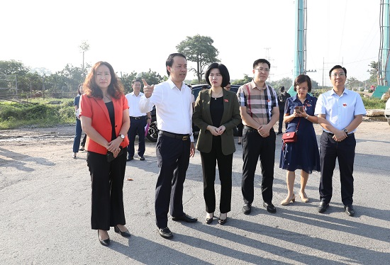 * Trước khi làm việc với UBND quận, đoàn đã đi giám sát thực tế tại Dự án đường Tây Thăng Long đoạn qua địa bàn quận Bắc Từ Liêm.