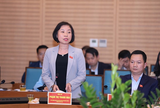Phó Trưởng đoàn chuyên trách đoàn đại biểu Quốc hội thành phố Hà Nội Phạm Thị Thanh Mai trao đổi tại buổi làm việc