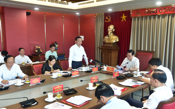 Đồng chí Nguyễn Ngọc Tuấn dự buổi làm việc của Bí thư Thành ủy với Ban cán sự Đảng Bộ Tài nguyên và Môi trường