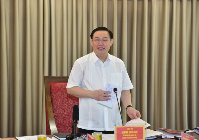 Sáng 22/5, Ủy viên Bộ Chính trị, Bí thư Thành ủy, Trưởng đoàn đại biểu Quốc hội thành phố Hà Nội Vương Đình Huệ chủ trì làm việc với Ban Cán sự Đảng Bộ Tài nguyên và Môi trường (TN&MT); một số bộ, ban, ngành liên quan về một số nội dung lớn trong công tác quản lý TN&MT trên địa bàn Thủ đô.