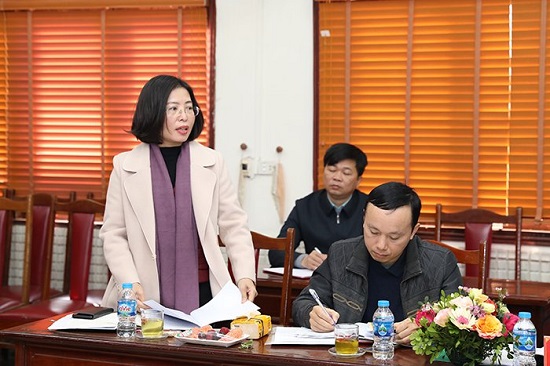Trưởng ban Tuyên giáo Huyện ủy Trần Hồng Hạnh phát biểu tại Hội nghị