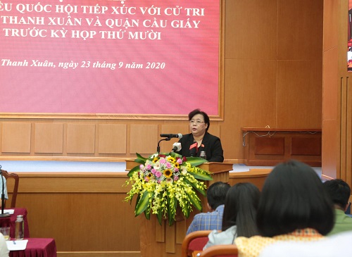 Báo cáo với cử tri, đại biểu Quốc hội cho biết, kỳ họp thứ Mười, Quốc hội khóa XIV sẽ diễn ra từ ngày 20-10 đến 17-11-2020 và chia làm 2 đợt, đợt 1 họp trực tuyến, đợt 2 họp tập trung tại hội trường. Kỳ họp sẽ xem xét thông qua 6 dự án luật, 1 dự thảo nghị quyết, cho ý kiến 6 dự án luật, đồng thời xem xét, quyết định các nội dung về kinh tế - xã hội, ngân sách nhà nước và các vấn đề khác thuộc thẩm quyền. Tại các hội nghị, đại biểu Quốc hội đã báo cáo với cử tri về trả lời của các bộ, ngành trung ương và UBND thành phố Hà Nội đối với các ý kiến, kiến nghị của cử tri tại kỳ tiếp xúc sau kỳ họp thứ Chín, Quốc hội khóa XIV.