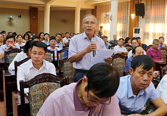 Cử tri thị xã Sơn Tây phát biểu ý kiến tại buổi tiếp xúc