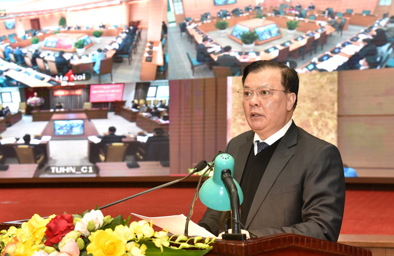 Bí thư Thành ủy Hà Nội Đinh Tiến Dũng phát biểu bế mạc hội nghị