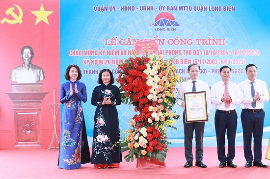 Sáng 10/10/2023, Quận ủy - HĐND - UBND - Ủy ban Mặt trận Tổ quốc Việt Nam quận Long Biên tổ chức Lễ gắn biển công trình cấp thành phố và cấp quận chào mừng 69 năm Ngày Giải phóng Thủ đô (10/10/1954-10/10/2023), kỷ niệm 20 năm thành lập quận Long Biên.