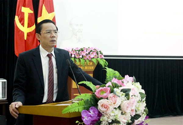 Bí thư huyện ủy Nguyễn Huy Việt phát biểu tại hội nghị
