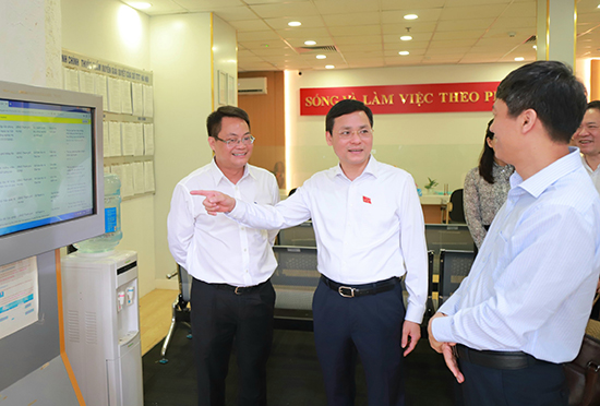 Đoàn giám sát thực tế tại bộ phận Một cửa Sở TT&TT
