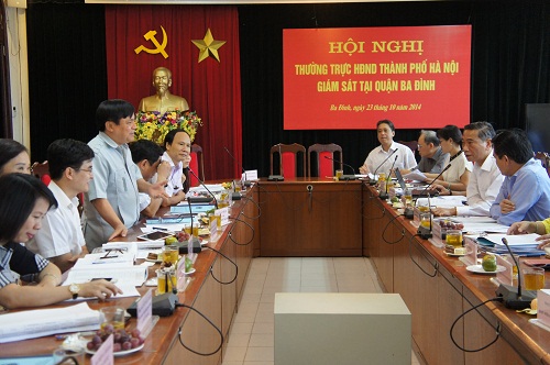 Tiếp tục kế hoạch giám sát về tình hình kinh tế - xã hội và hoạt động của HĐND các cấp, sáng ngày 23/10/2014, Đoàn giám sát số 2 do đồng chí Lê Văn Hoạt – Thành ủy viên, Phó Chủ tịch HĐND Thành phố làm Trưởng đoàn đã làm việc với HĐND, UBND quận Ba Đình.