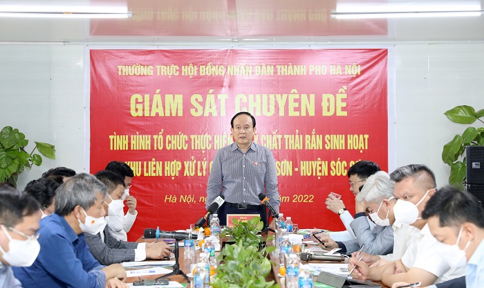 Tại buổi giám sát, dưới sự điều hành thảo luận của Phó Chủ tịch HĐND TP Phạm Quí Tiên, trưởng đoàn giám sát, thành viên đoàn đã trao đổi, đề nghị chủ đầu tư, các sở ngành liên quan và huyện Sóc Sơn thông tin về các nội dung đoàn quan tâm, làm cơ sở cho đoàn giám sát đánh giá tình hình tổ chức thực hiện xử lý chất thải rắn sinh hoạt tại Khu liên hợp xử lý chất thải Nam Sơn.