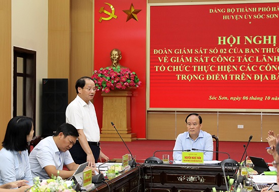 Sáng 6/10/2022, Đoàn giám sát số 2 của Ban Thường vụ Thành ủy Hà Nội đã giám sát việc lãnh đạo, chỉ đạo và tổ chức thực hiện các công trình, dự án trọng điểm trên địa bàn huyện Sóc Sơn.
