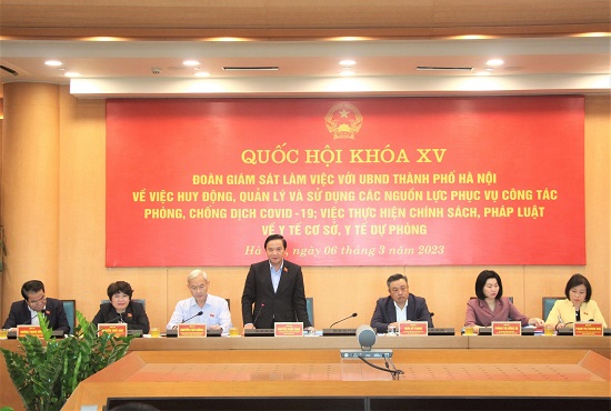 Chiều 06/3/2023, đoàn giám sát của Quốc hội khóa XV do Ủy viên Trung ương Đảng, Phó Chủ tịch Quốc hội Nguyễn Khắc Định, Trưởng đoàn giám sát dẫn đầu đã làm việc với UBND thành phố Hà Nội về "Việc huy động, quản lý và sử dụng các nguồn lực phục vụ công tác phòng, chống dịch Covid-19; việc thực hiện chính sách, pháp luật về y tế cơ sở, y tế dự phòng”.