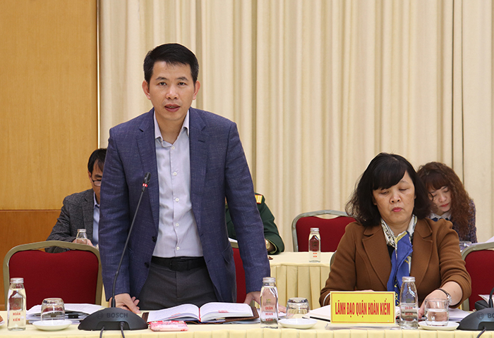 Chủ tịch UBND quận Hoàn Kiếm Phạm Tuấn Long phát biểu tại buổi làm việc