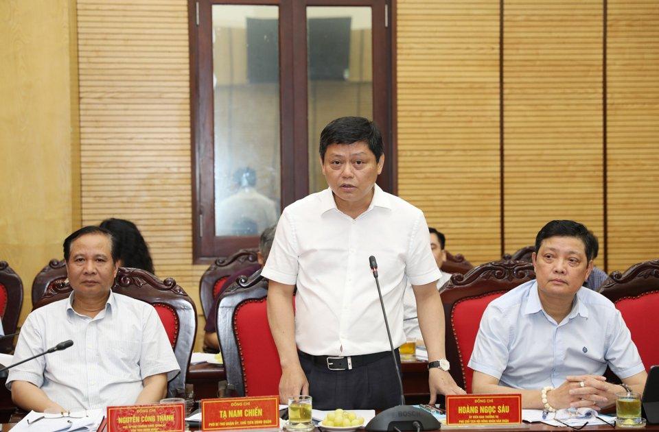 Chủ tịch UBND quận Ba Đình Tạ Nam Chiến báo cáo tại buổi làm việc