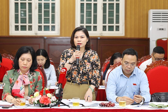 Phó Trưởng ban Văn hóa xã hội HĐND Thành phố Hoàng Thị Tú Anh trao đổi tại buổi làm việc