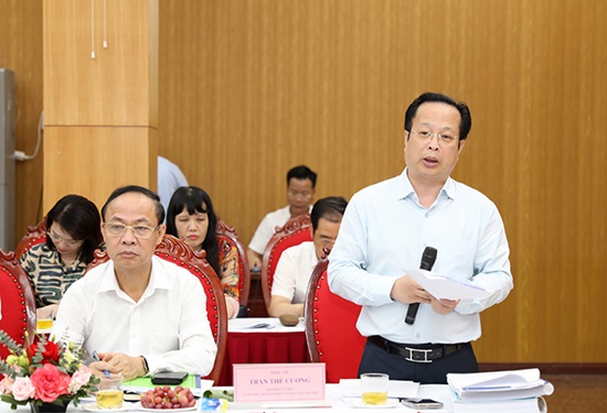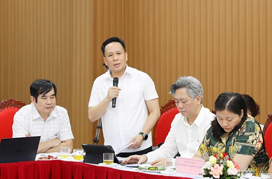 Phó Giám đốc Sở Tài chính Vũ Trung Thành trao đổi tại buổi làm việc