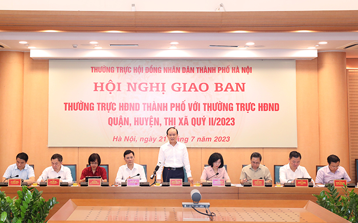 Sáng 21/7/2023, Phó Bí thư Thành ủy, Chủ tịch HĐND Thành phố Hà Nội Nguyễn Ngọc Tuấn đã chủ trì Hội nghị giao ban Thường trực HĐND thành phố với Thường trực HĐND quận, huyện, thị xã quý II-2023. Hội nghị được tổ chức trực tiếp kết hợp trực tuyến từ trụ sở HDNĐ-UBND thành phố đến 30 điểm cầu quận, huyện, thị xã.