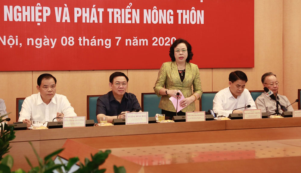 Mở đầu buổi làm việc, Bí thư Thành ủy Vương Đình Huệ cho biết, mặc dù Hà Nội là đô thị đặc biệt, là Thủ đô, nhưng nông nghiệp, nông thôn và nông dân có ý nghĩa rất quan trọng với sự phát triển của Thủ đô. Hiện nay, trong số 30 quận, huyện, thị xã của thành phố, có 17 huyện, 1 thị xã và 6 quận vẫn còn sản xuất nông nghiệp. Số xã của thành phố cũng nhiều nhất so với các tỉnh, thành phố trong cả nước (383 xã/579 xã, phường, thị trấn); tốc độ đô thị hóa cũng mới đạt xấp xỉ 50%. Trong bối cảnh đó, Thành ủy Hà Nội đã rất chú trọng chỉ đạo về “tam nông”, đặc biệt là qua Chương trình số 02-CTr/TU.