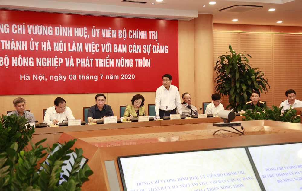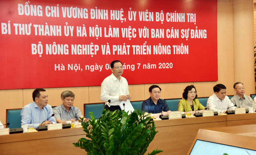 Chiều 8-7, phát biểu tại buổi làm việc với Ban Cán sự đảng Bộ Nông nghiệp và Phát triển nông thôn, đồng chí Vương Đình Huệ, Ủy viên Bộ Chính trị, Bí thư Thành ủy, Trưởng đoàn đại biểu Quốc hội thành phố Hà Nội cho biết, thời gian qua mặc dù chịu tác động mạnh về dịch bệnh, nhưng nông nghiệp, nông thôn và nông dân Thủ đô vẫn phát triển khá toàn diện.