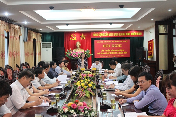 Sáng ngày 8-9, Đoàn ĐBQH thành phố Hà Nội đã tổ chức hội nghị lấy ý kiến đóng góp vào dự thảo Luật Thống kê. Bà Nguyễn Thị Hồng Hà, Phó Trưởng đoàn ĐBQH thành phố Hà Nội chủ trì hội nghị. Một số vị đại biểu Quốc hội trong Đoàn, đông đảo các chuyên gia, đại diện các sở, ngành, quận, huyện, thị xã của Hà Nội, các trường đại học, viện nghiên cứu, hội đoàn thể… đã tham dự và có ý kiến đóng góp.