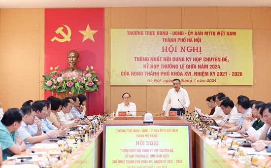 Sáng 26/4, Thường trực HĐND - UBND - Ủy ban MTTQ Việt Nam thành phố Hà Nội tổ chức Hội nghị thống nhất nội dung kỳ họp chuyên đề, kỳ họp thường lệ giữa năm 2024 của HĐND Thành phố khoá XVI, nhiệm kỳ 2021-2026.