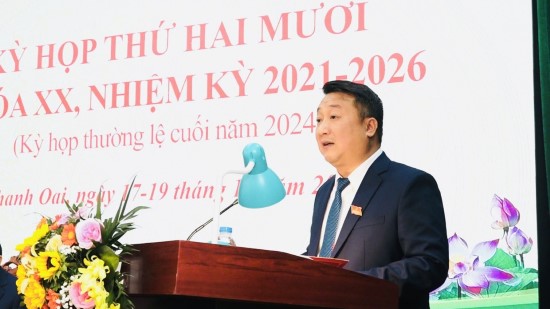Với tinh thần làm việc khẩn trương, nghiêm túc, dân chủ và trách nhiệm cao, Kỳ họp thứ 20 HĐND huyện khoá XX, nhiệm kỳ 2021 - 2026 đã hoàn thành nội dung, chương trình đề ra. Kỳ họp đã thông qua 6 Nghị quyết: Về nhiệm vụ phát triển kinh tế, xã hội năm 2024, phương hướng nhiệm vụ phát triển kinh tế năm 2025; Về việc phê chuẩn dự toán ngân sách nhà nước, phương án phân bổ ngân sách địa phương năm 2025; Về việc phê chuẩn điều chỉnh kế hoạch đầu tư công năm 2024; Kế hoạch đầu tư công năm 2025; bổ sung, cập nhật kế hoạch đầu tư công trung hạn giai đoạn 2021-2025 của huyện Thanh Oai; Về kế hoạch tổ chức các Kỳ họp HĐND huyện năm 2025; Về việc thành lập Đoàn giám sát việc chấp hành pháp luật về xử lý vi phạm hành chính trong lĩnh vực quản lý đất đai, tài nguyên môi trường trên địa bàn huyện giai đoạn 2023-2024; Về việc thành lập Đoàn Giám sát việc thực hiện chính sách trợ giúp đối tượng bảo trợ xã hội theo Nghị quyết số 09/NQ-HĐND ngày 23/9/2021 của HĐND TP Hà Nội.