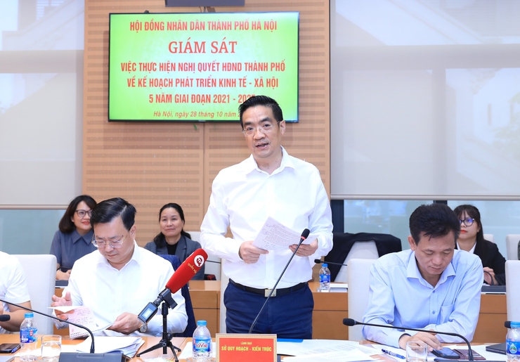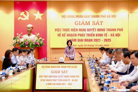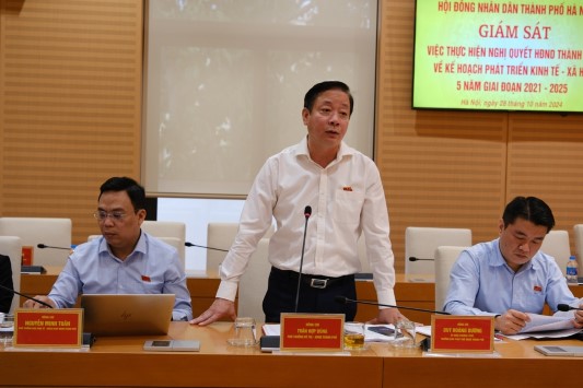 Sáng 28/10/2024, Đoàn giám sát của HĐND thành phố Hà Nội đã làm việc với các Sở Xây dựng, Giao thông-Vận tải, Quy hoạch-Kiến trúc, Tài nguyên và Môi trường về việc thực hiện Nghị quyết số 20/NQ-HĐND ngày 23/9/2021 của HĐND TP Hà Nội về kế hoạch phát triển kinh tế - xã hội 5 năm giai đoạn 2021-2025.