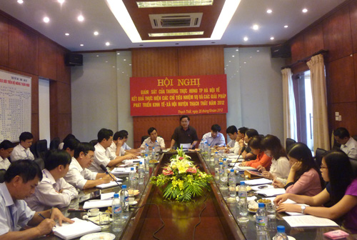 Báo cáo tại buổi làm việc, lãnh đạo huyện Thạch Thất cho biết, 9 tháng đầu năm 2012, tổng thu ngân sách huyện đạt 509.890 triệu đồng, bằng 87% dự toán năm. Tổng chi ngân sách huyện đạt 449.462 triệu đồng, bằng 77% dự toán năm.