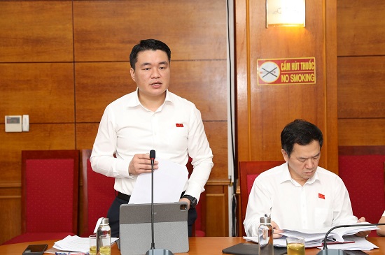 Chủ tịch UBND quận Hà Đông Cấn Thị Việt Hà báo cáo với đoàn giám sát.