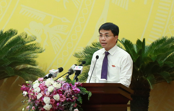 Ủy viên Thường trực, Chánh Văn phòng HĐND TP Hà Nội Lê Minh Đức trình bày tờ trình