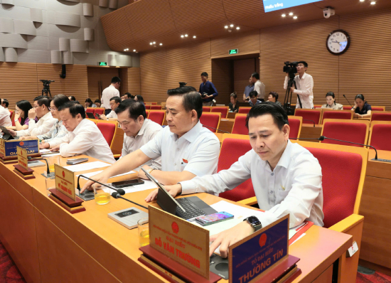 Các đại biểu bấm nút thông qua Nghị quyết