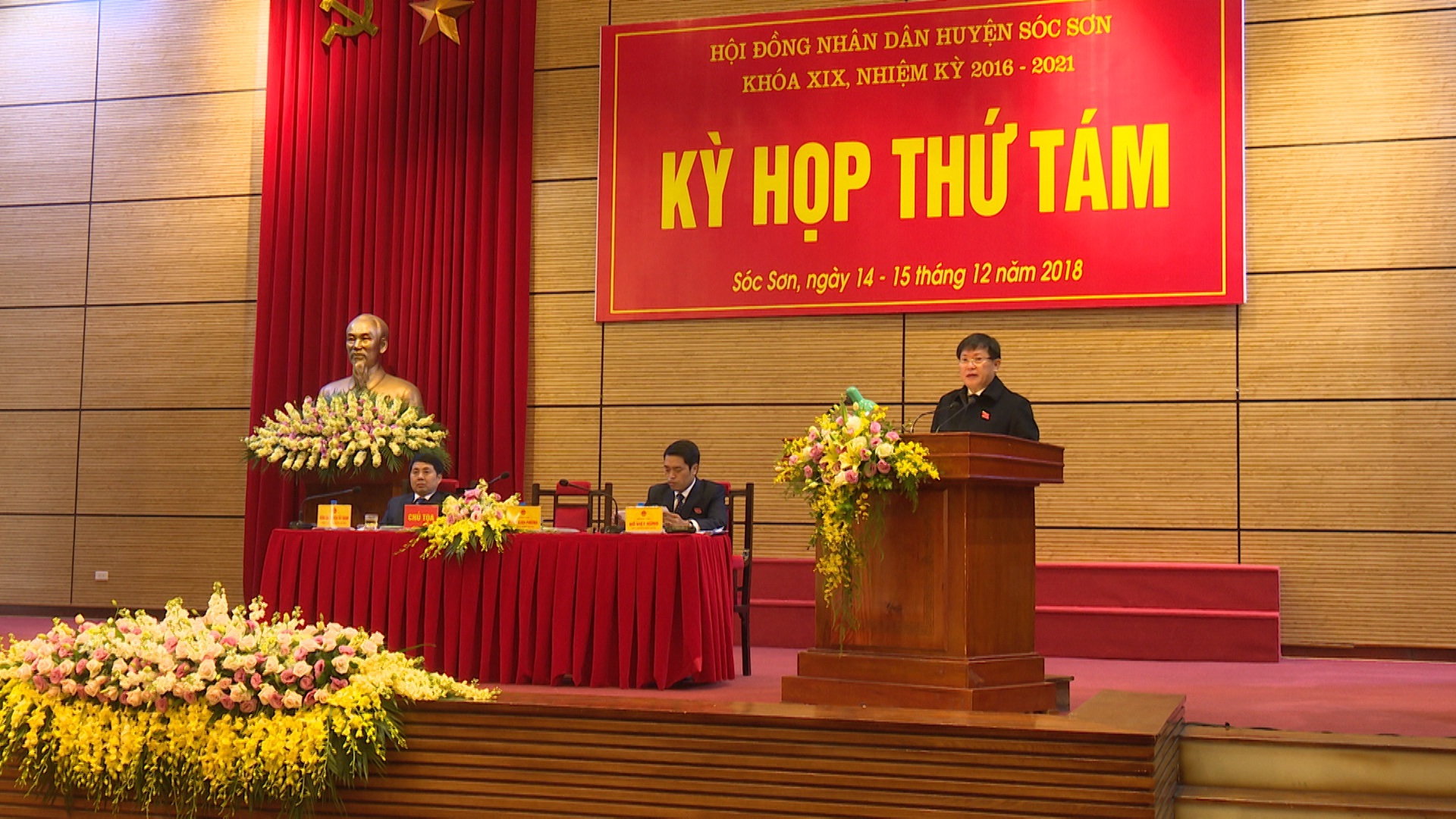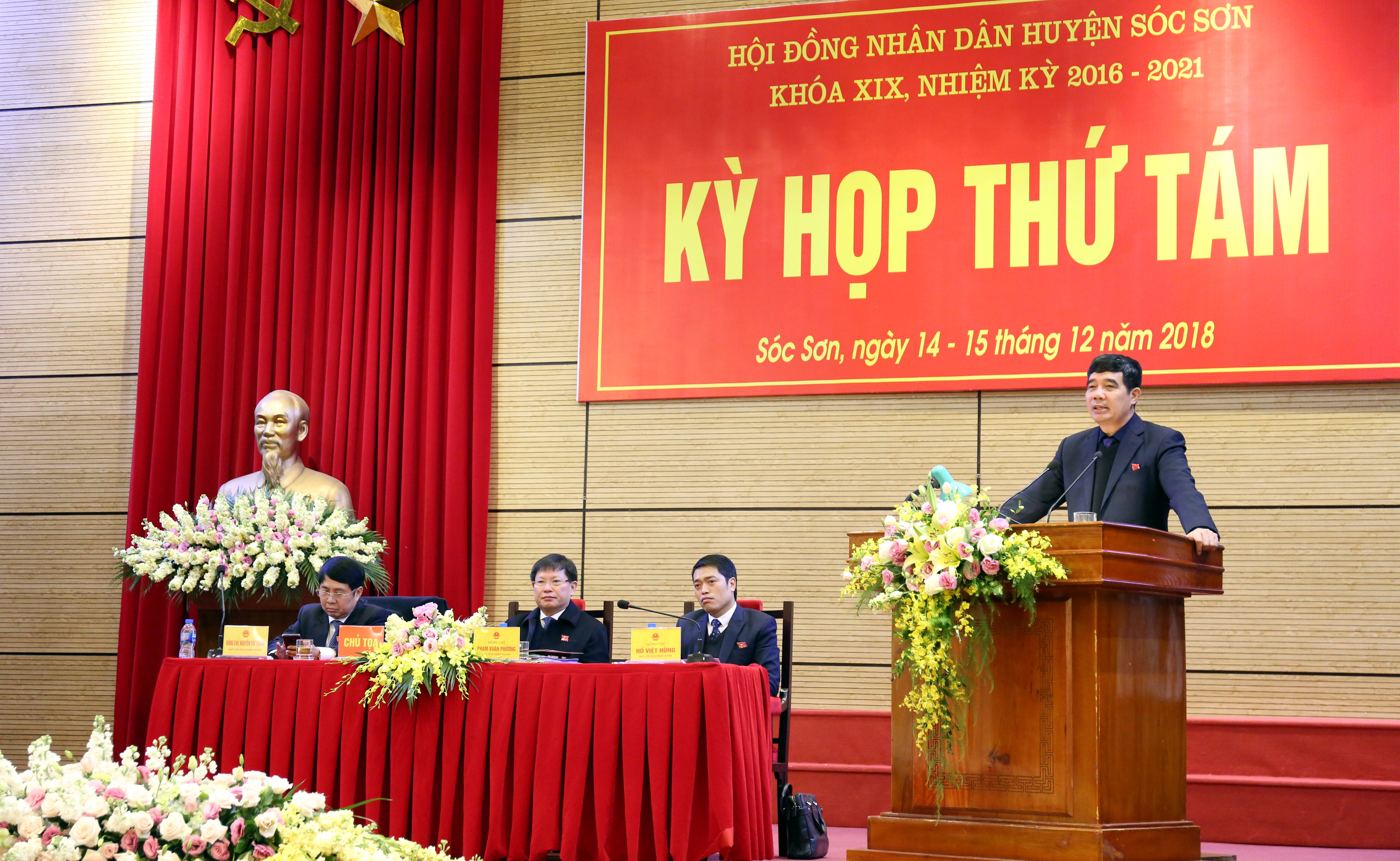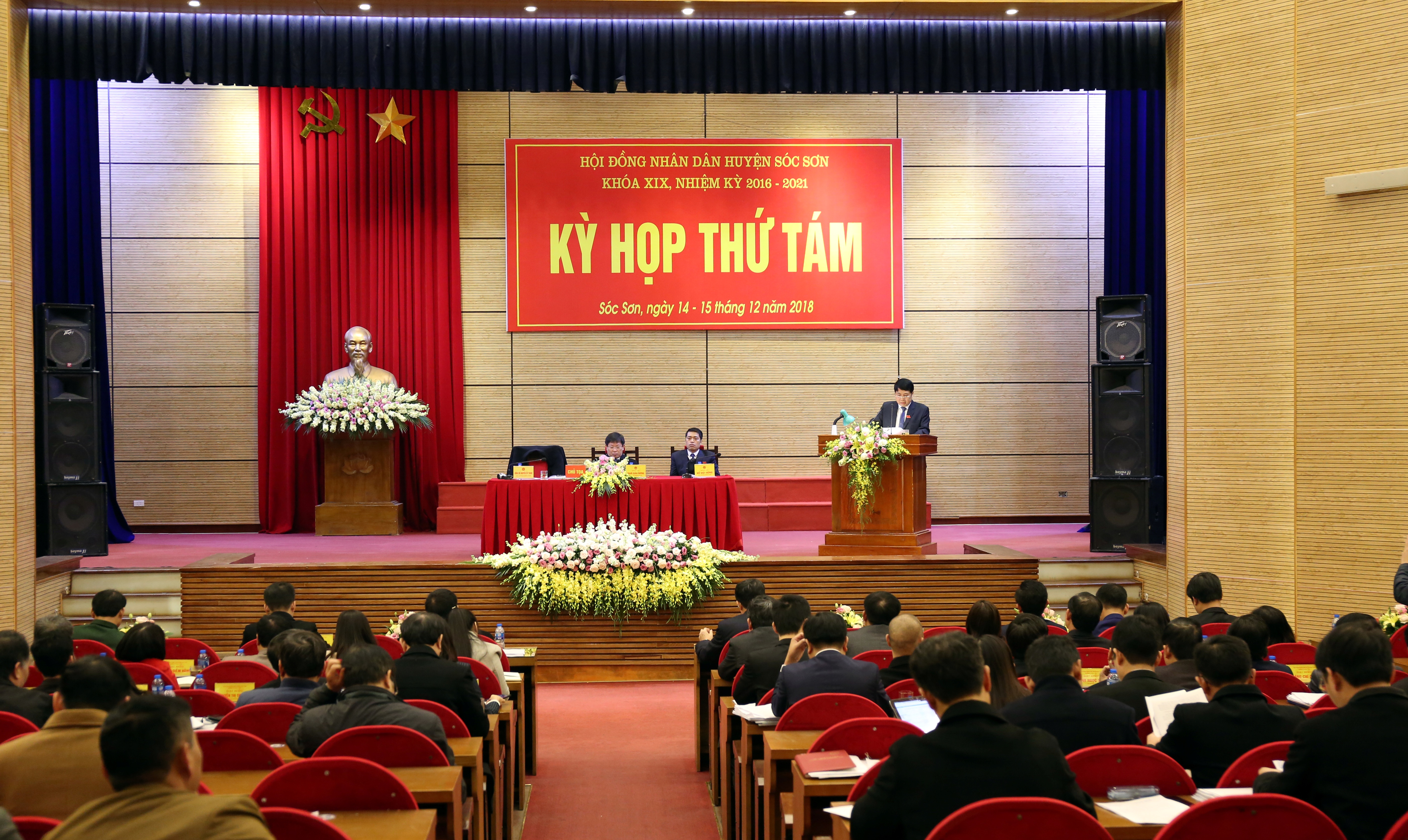 Thực hiện Luật tổ chức chính quyền địa phương năm 2015, từ ngày 14/12 đến ngày 15/12/2018, HĐND huyện Sóc Sơn đã tổ chức kỳ họp thứ 8 HĐND huyện khóa XIX, nhiệm kỳ 2016 – 2021. Tham dự kỳ họp có: Các đồng chí trong Thường trực Huyện ủy, Ban thường vụ Huyện ủy, Ban chấp hành Đảng bộ huyện; lãnh đạo HĐND - UBND - Ủy ban MTTQ Việt Nam huyện Sóc Sơn; lãnh đạo Toà án nhân dân huyện, Viện kiểm sát nhân dân huyện; các ông (bà) đại biểu HĐND huyện khoá 19; lãnh đạo các phòng, ban, đoàn thể thuộc Huyện; Thủ trưởng các cơ quan, đơn vị của Thành phố đóng trên địa bàn huyện; Bí thư Đảng uỷ, Chủ tịch, phó chủ tịch HĐND, Chủ tịch UBND các xã, thị trấn.