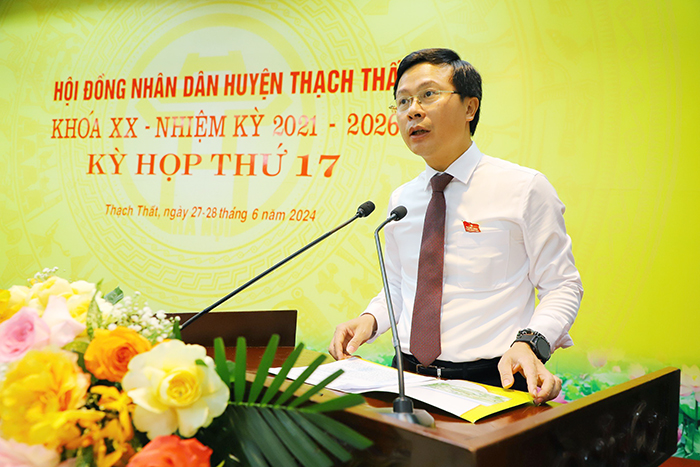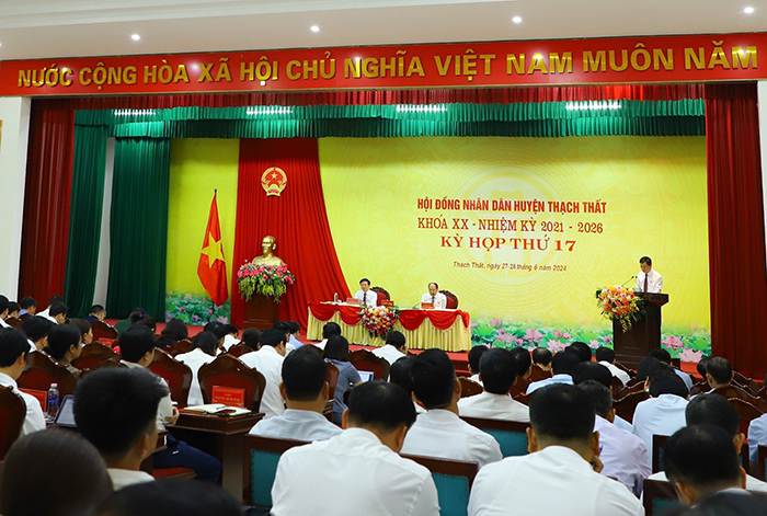Ngày 27/6/2024, HĐND huyện Thạch Thất khóa XX, nhiệm kỳ 2021-2026 tổ chức kỳ họp thứ 17, kỳ họp thường lệ giữa năm 2024 để xem xét, quyết định các nội dung thuộc thẩm quyền.