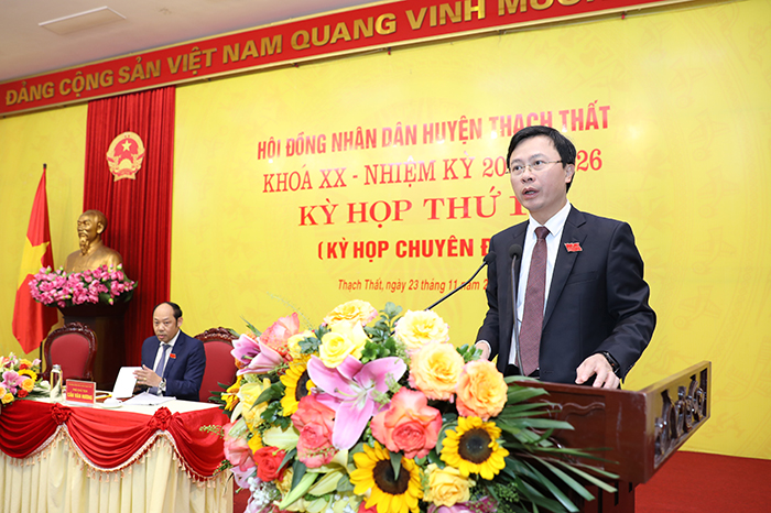 Sáng 23/11/2023, HĐND huyện Thạch Thất khóa XX, nhiệm kỳ 2021-2026 tổ chức kỳ họp thứ 13 (Kỳ họp chuyên đề) để xem xét quyết định những nội dung quan trọng thuộc thẩm quyền.