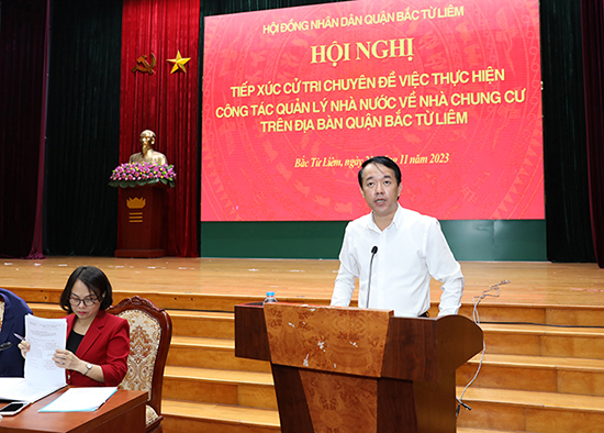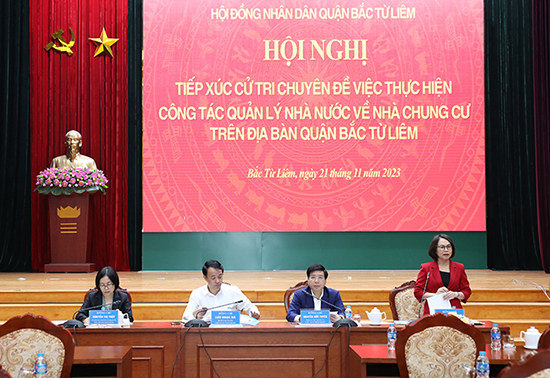 Chiều 21/11/2023, HĐND quận Bắc Từ Liêm tổ chức hội nghị tiếp xúc cử tri chuyên đề việc thực hiện công tác quản lý nhà nước về nhà chung cư trên địa bàn quận.