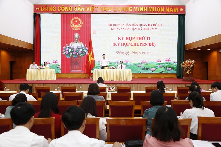 Sáng 12/10/2023, HĐND quận Hà Đông khóa XXI, nhiệm kỳ 2021-2026 tổ chức kỳ họp thứ 11 (kỳ họp chuyên đề) để xem xét cho thôi nhiệm vụ đại biểu HĐND quận và xem xét đề xuất của UBND quận đối với việc bổ sung kế hoạch đầu tư công giai đoạn 2021-2025.